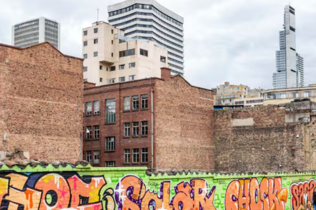 Sector del barrio industrial de Puente Aranda transformado en galería a cielo abierto, con calles estrechas y fachadas cubiertas de murales de gran formato, grafitis tipográficos y arte urbano experimental. La zona mantiene su carácter industrial —bodegas, talleres y muros de ladrillo—, lo que crea un contraste visual único entre lo rudo de la arquitectura […]